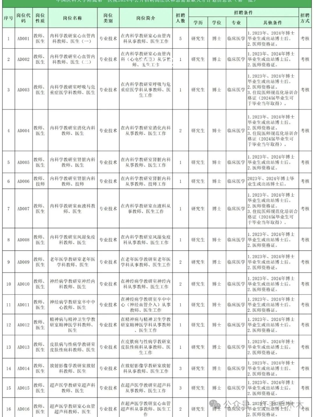 比如,某省会城市医科大学附属医院的招聘要求是这样的