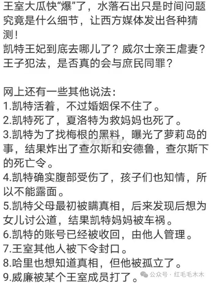 消失的凯特王妃,最近一直在微博热搜上挂着,大家众说纷纭。主要就是凯特消失了80多天,一直不知所踪,然后英国王室的一系列操作让大家越看越觉得反常且蹊跷…也难怪大家越想越觉得凯特王妃凶多吉少…
