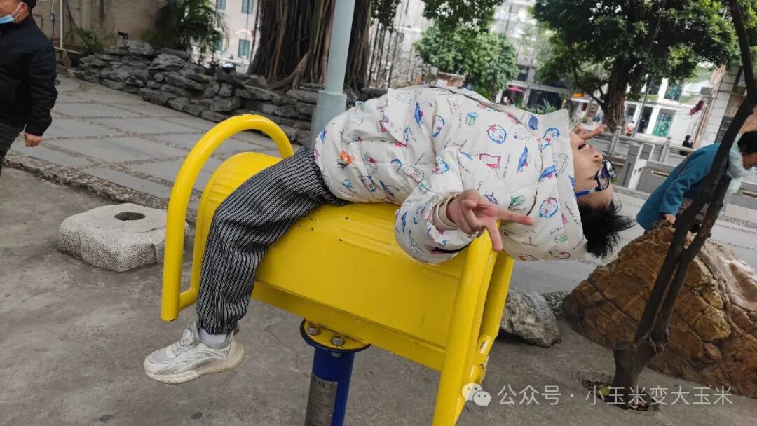 去公园里玩“胖崽攻击”,两个人像碰碰车一样互相追逐。
