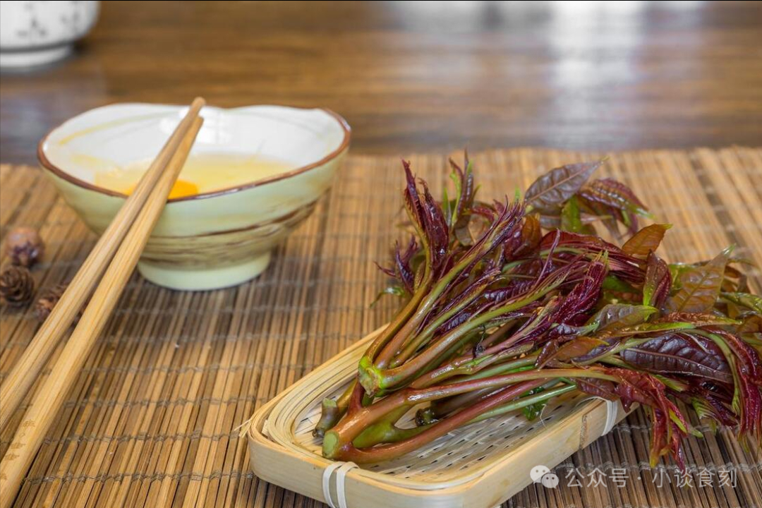香椿,很多地方清明节的时候,会吃青团子,但是在我们当地却不这样,人们更喜欢去吃香椿,把它香椿和家里的韭菜进行搭配,再来上一点腊肉丁,炒熟,制作成馅料,然后再用红薯粉把它包起来,那才叫人间美味。