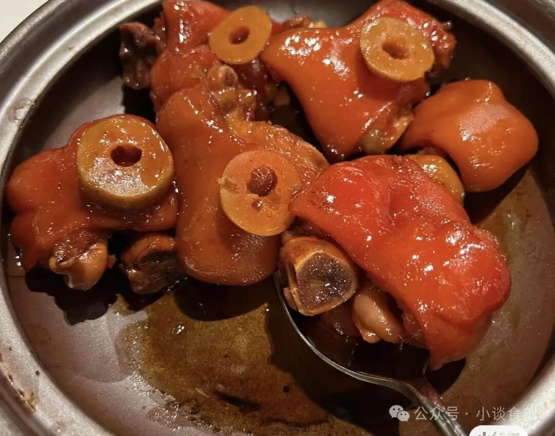 这个猪手做法,和江西很多地方的餐馆味道完全不一样,它是山楂味的,颜色特别的好看, 红润油亮,吃上一口,软软糯糯的 猪皮一咬就化,还算不错。