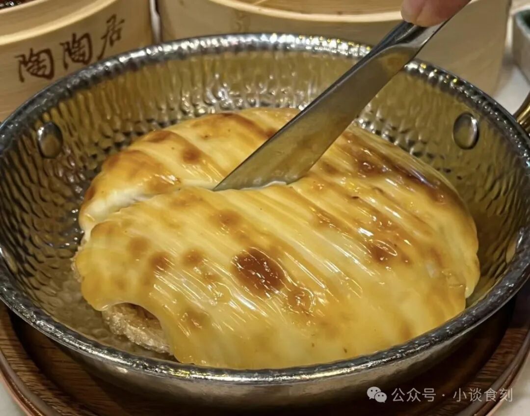 很多人到陶陶居来,就是想要打卡这个芝士焗糯米鸡,糯糯的糯米鸡加上浓香的芝士,焗出来香掉头,里面是香菇蛋黄,馅料还超多,咸香甜糯层次巨丰富,这个菜张帆三人,都一直好评,说是很美味。