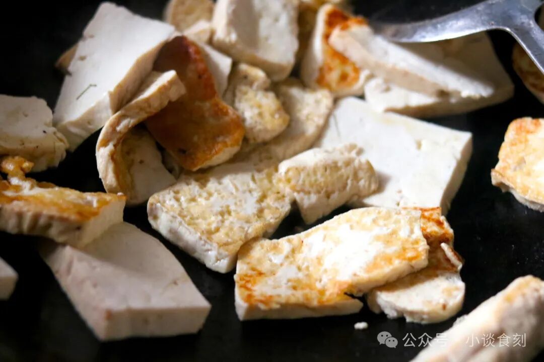 做法:1、把豆腐清洗干净之后,切成块,然后放入到油锅中开始去煎;2、把豆腐煎制两面金黄的时候,倒出多余的油;3、接着倒入豆腐,放入一点盐加入一点酱油,把它拌匀,这样就可以开吃了。