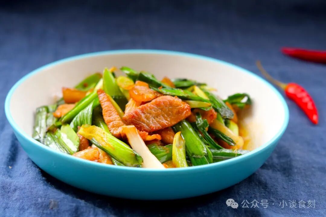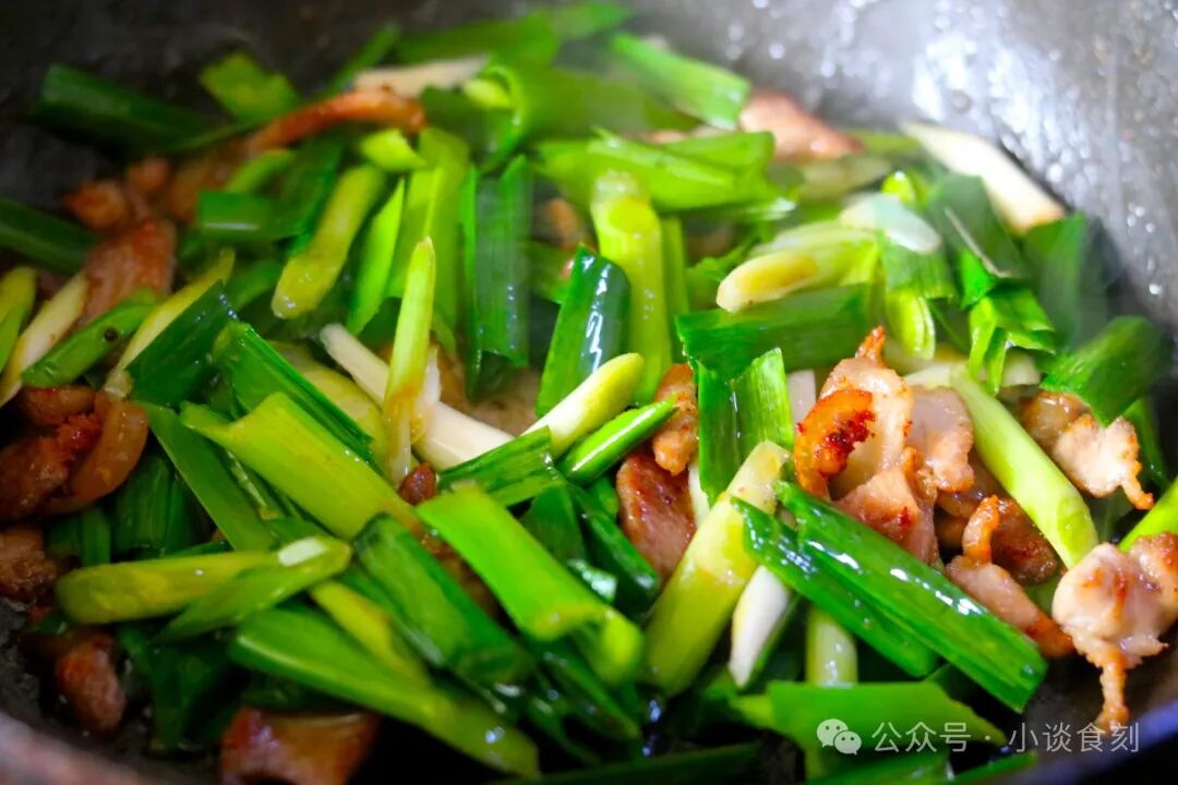 所需食材:青蒜苗、猪肉、植物油、盐、酱油、料酒、味精