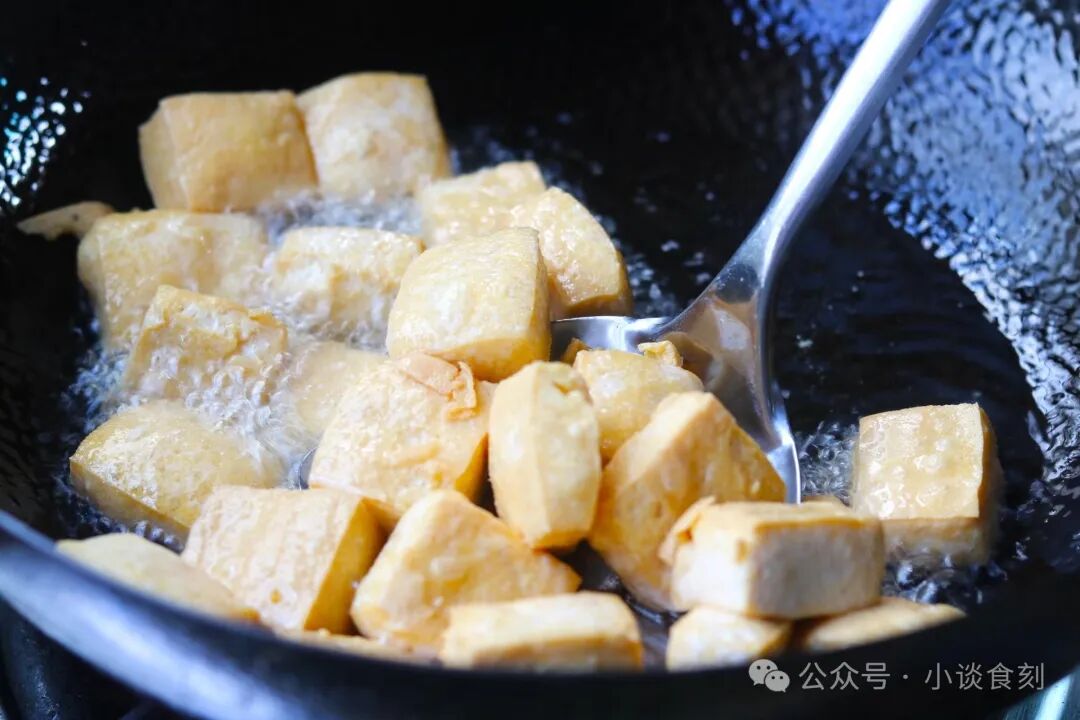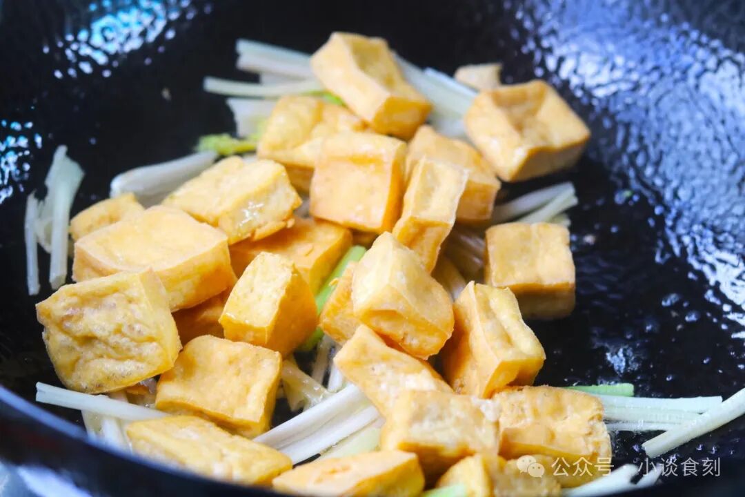 做法:1、把豆腐清洗干净,切成块状,芹菜洗净,切成条装;2、锅中放入植物油,烧热之后,放入豆腐煎香,接着把它捞出来控干油份;3、锅里留底油,放入蒜末爆香,倒入芹菜,接着倒入豆腐,放入盐,加入一点酱油,炒匀之后,放入一点鸡粉,拌匀就可以了。