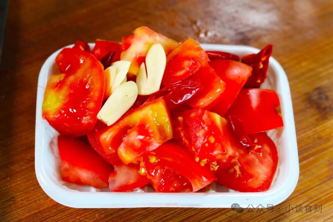 所需食材:包菜适量、番茄、干辣椒、蒜末、植物油、盐、生抽、鸡粉