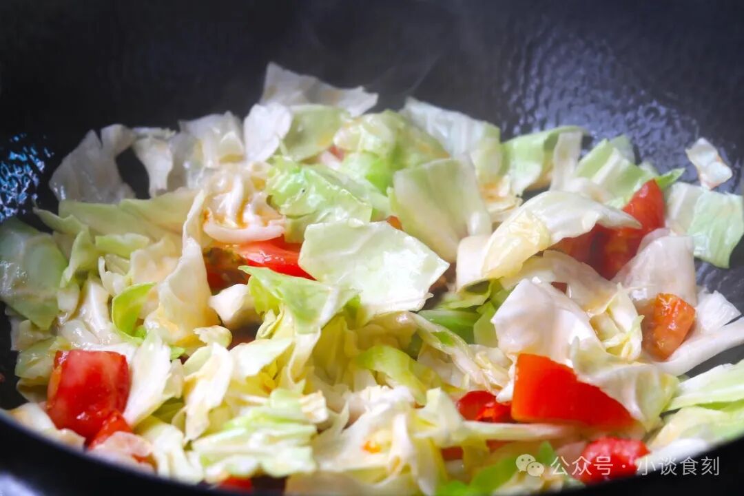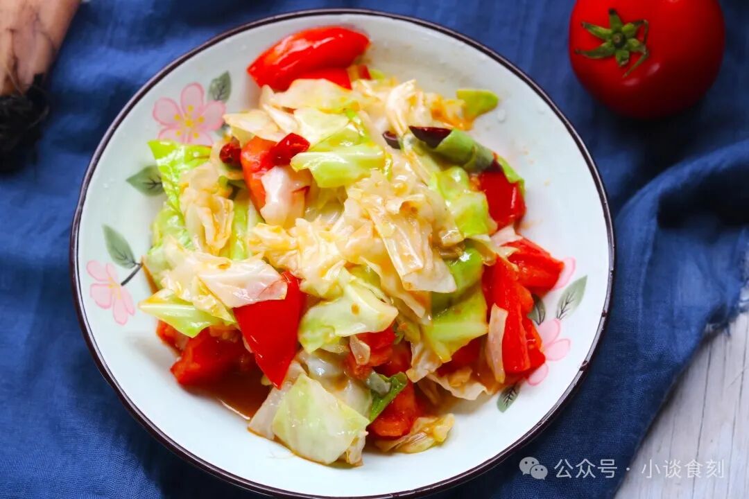 做法:1、包菜撕成块,可以撕的均匀一点,然后放入到篮子中沥干多余的水分;2、锅中放入植物油,烧热之后,放入番茄进去翻炒,炒香之后,放入干辣椒还有蒜片,继续翻炒;3、倒入包菜进行大火翻炒,把它炒香,放入一点盐和生抽,来上一点鸡粉,炒匀就可以出锅了。