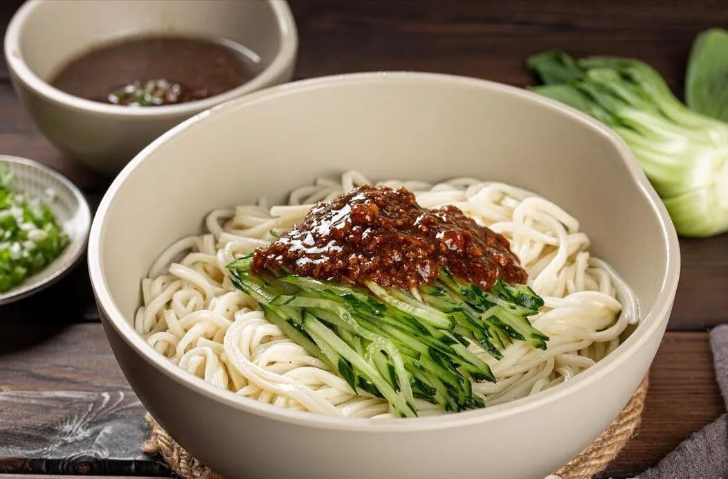 做法:把面条放入到沸水当中,把它煮熟透,然后捞出,锅中放入一点油,来点肉末爆香,放入黄豆酱,把它炒香,接着放入到装有面的碗中,把它拌匀,就可以吃了。