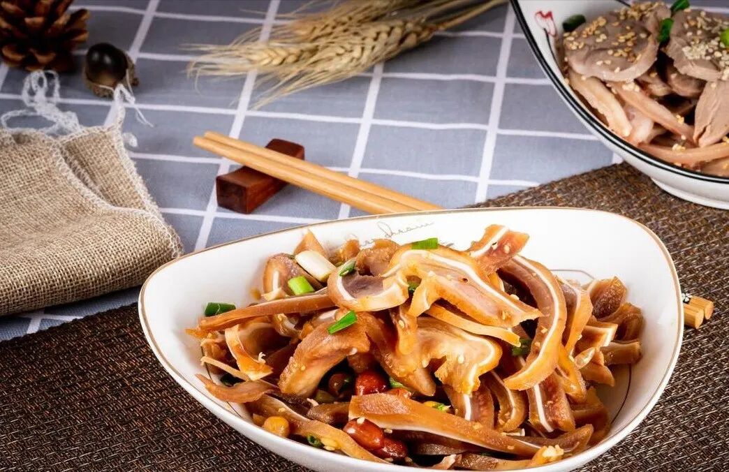 做法:猪耳朵,把它清洗干净,焯水之后,切成条状,锅中放入植物油,烧热之后,放入姜片还有大蒜,如果喜欢吃辣椒的,可以来点小米辣,放入切好的猪耳朵翻炒,接着放入一点辣椒,不断煸炒,加入盐放入生抽,来上一点鸡粉,炒匀就可以出锅了。