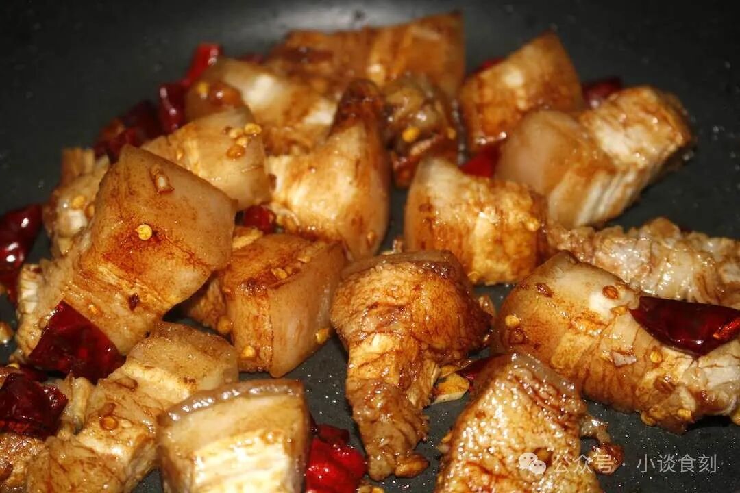 所需食材:猪五花肉、冰糖、植物油、盐、香叶、八角、桂皮、辣椒、姜片