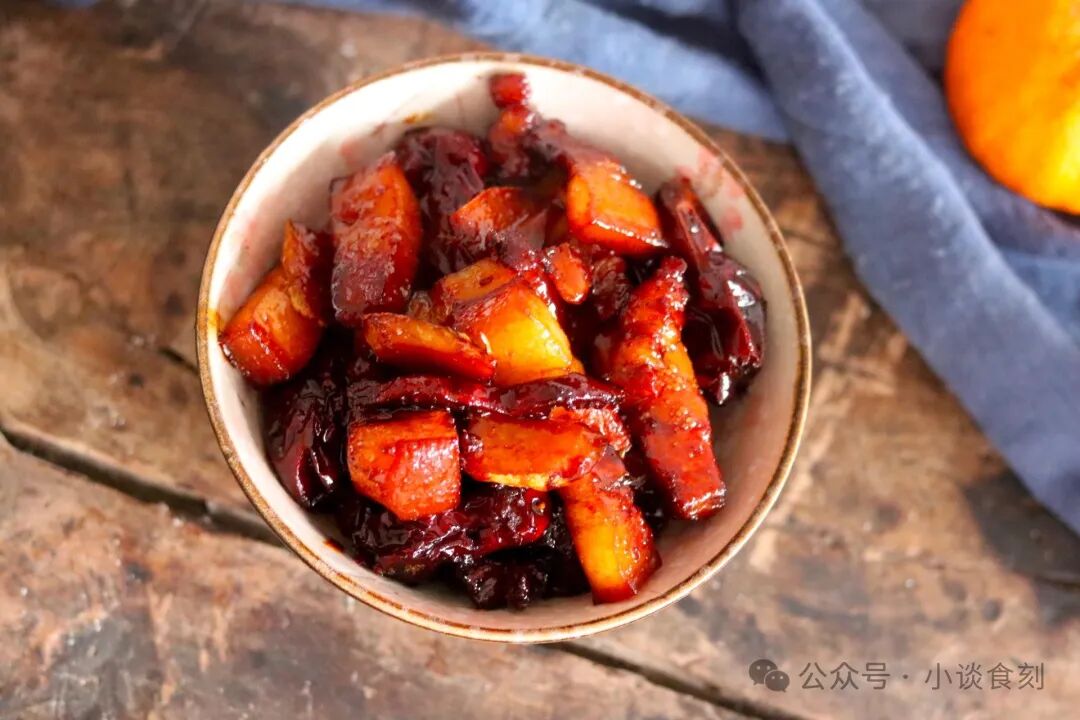做法:1、把猪五花肉清洗干净,切成大块,接着放入到一个大碗中留着备用;2、锅中放入植物油,接着来上一点白糖不断的进行翻炒,把它炒出糖色,接着倒入猪五花肉进行翻炒,把它炒香;3、炒出多余的油脂之后,放入八角、桂皮还有姜片,加入开水,大火煮沸小火慢炖,放入一点盐,直至软烂关火。