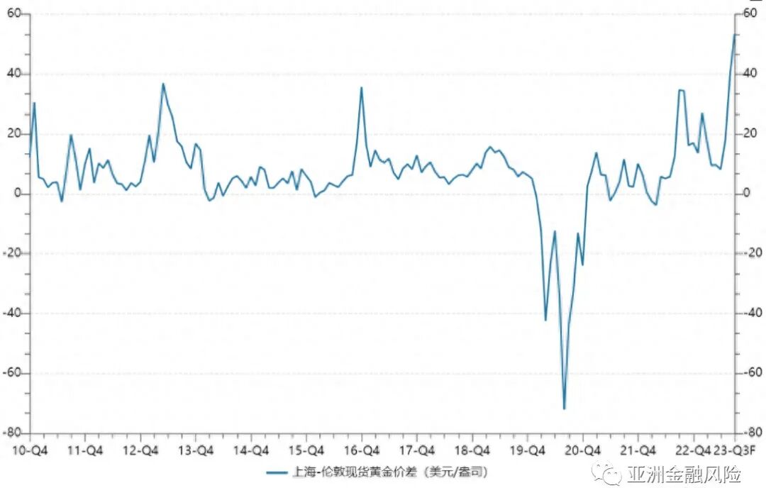 8月以来,上海-伦敦黄金价格快速走高,9月的平均溢价达到53.4美元/盎司,几乎是7月的3倍,创下历史新高。