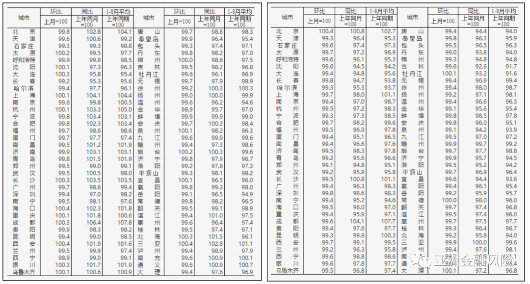 9月15日,国家统计局发布了8月份70个大中城市商品住宅销售价格的变动情况。