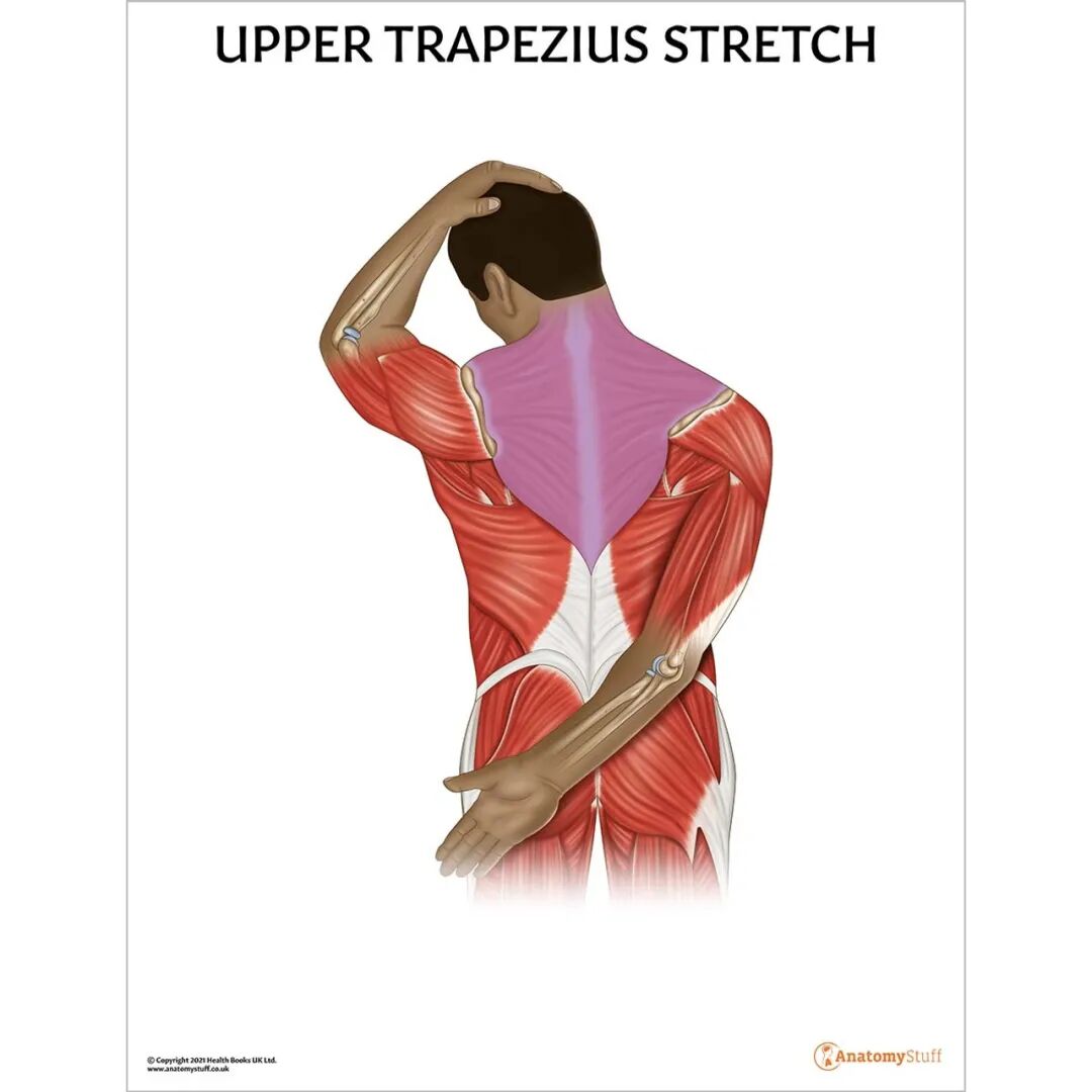 在我们的直觉里,身体哪里紧张就应该拉伸它,但在具体的实践中,缓解和释放肌肉紧张的方式有很多,拉伸并不是唯一。就像我们今天提到的这个“斜方肌拉伸”动作(如图),大多数人都练习过,原因很简单,方便、易操作,拉伸的时候很酸爽。