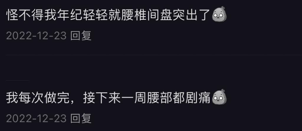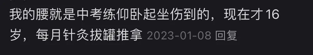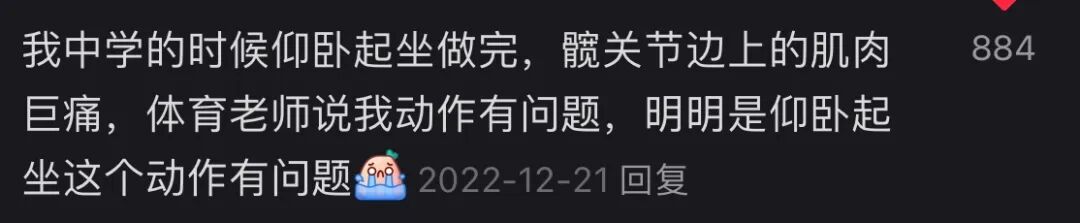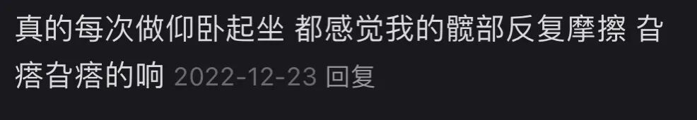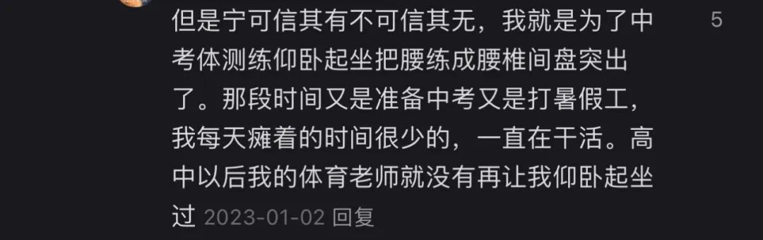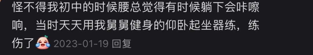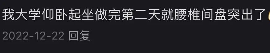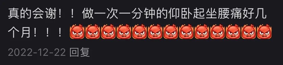 口说无凭,那我就罗列一些事实和反馈,类似的文章我在2022年发表过,当时收到了近千条评论,我把其中具有代表性的发出来供大家参考,我认为这几乎可以视为比较详实的针对仰卧起坐的问卷调查了。