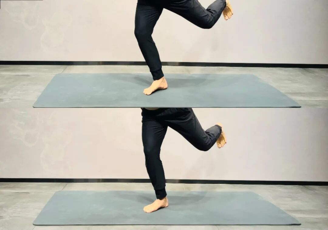 单腿的支撑测试可以很清楚的观察到这种异常,上图一是膝关节处于正常位置的下肢状态,可以很清楚的看到膝盖指向正前方,与脚尖同向,足弓也清晰可见,而上图二可以明显看到膝关节向内侧移动呈内扣状,上方髋部倾向于内收,下方的足弓也趋于塌陷,这种情况在生活和运动中不断被重复时,损伤和炎症的风险也就大大增加了。