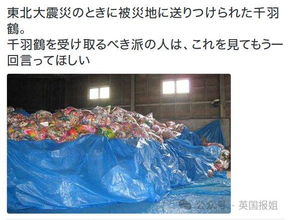 每次灾难过后都有一堆人折千纸鹤寄到灾区,日本媒体曾反复探讨这个现象。日本电视台甚至还做过“灾区不需要的捐赠物品”专题报道,其中排名第一的就是千纸鹤。