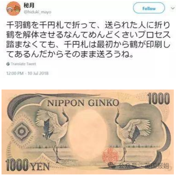 大家一致觉得,如果你无论如何都要把千纸鹤寄到灾区,不如直接用一千元的纸币(约人民币50元)来折,这样搞肯定没人再觉得你没诚意了。