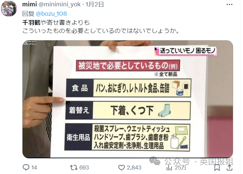 “作为东日本大地震的受害者提醒大家:往灾区寄千纸鹤真的会给受灾人员带来困扰!”