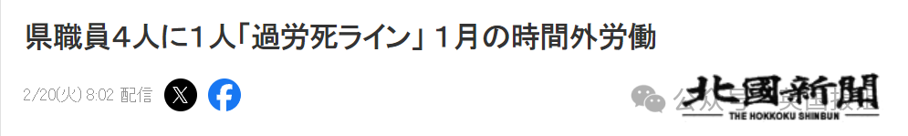 以日本石川县1月份的数据为例,全县3100名县职员中约有730人加班时间超过100小时以上, 其中约180人超过了200小时。他们的加班时长,远远超过日本规定的月均加班80个小时的“过劳死”线。