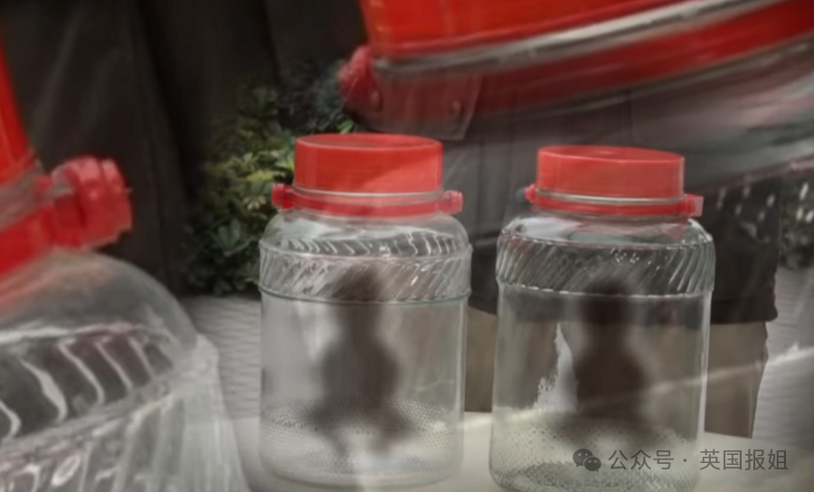高约30厘米、直径约15厘米的玻璃瓶中,盛放着黑色不明液体,影影绰绰有两个人形阴影。仔细看才发现,里面装的竟然是两具婴儿的尸体...