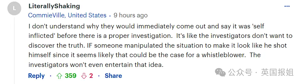 “我不明白为什么他们调查之前就直接说这是“自杀”,调查人员不想发现真相吗?