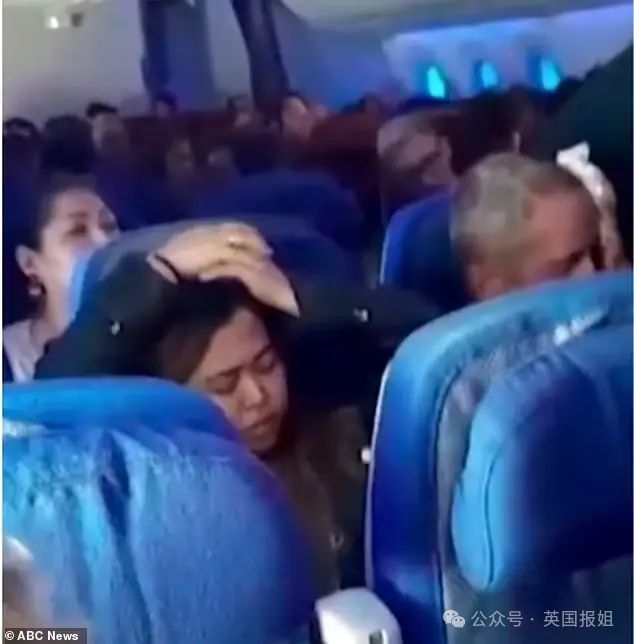“我旁边的一个先生没有系安全带,他的身体从我眼前飞上去,撞到了飞机顶上,俯视着我,然后再狠狠地摔下来,猛地与座椅扶手相撞。他的肋骨骨折了。”