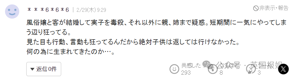 “风俗女和客人结婚生子又毒杀女儿,连父母、姐姐都可能是预谋杀害。短时间内一口气干掉这么多人,真是疯了。