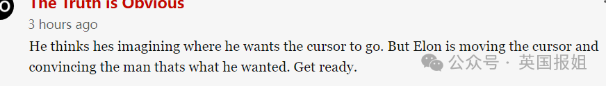 “他以为自己能通过大脑来操纵鼠标,但我觉得背后肯定有马斯克在暗中操纵,借此来给患者洗脑。”