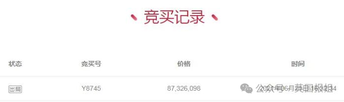于是,正式拍卖当天吸引了超过1.8万人参与,开拍10分钟价格就飙升到了100万元,半小时后竞价竟然达到8700多万元。