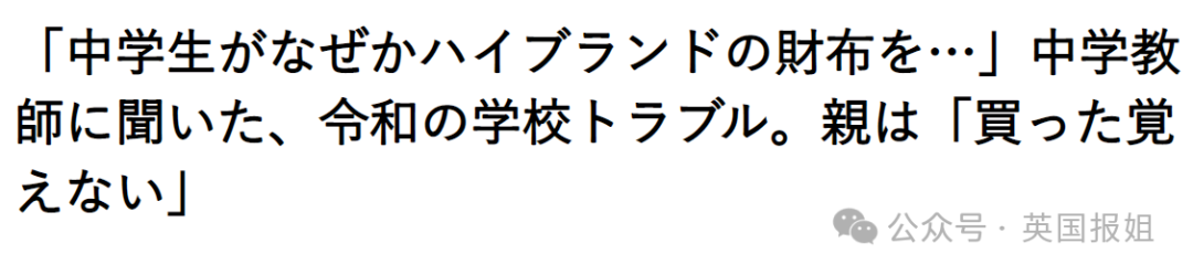 最近,日本一名初中老师爆料称,自己的学生钱包被盗,他在帮忙找寻时,得知对方用的是价值10万日元(5千rmb)的LV名牌。