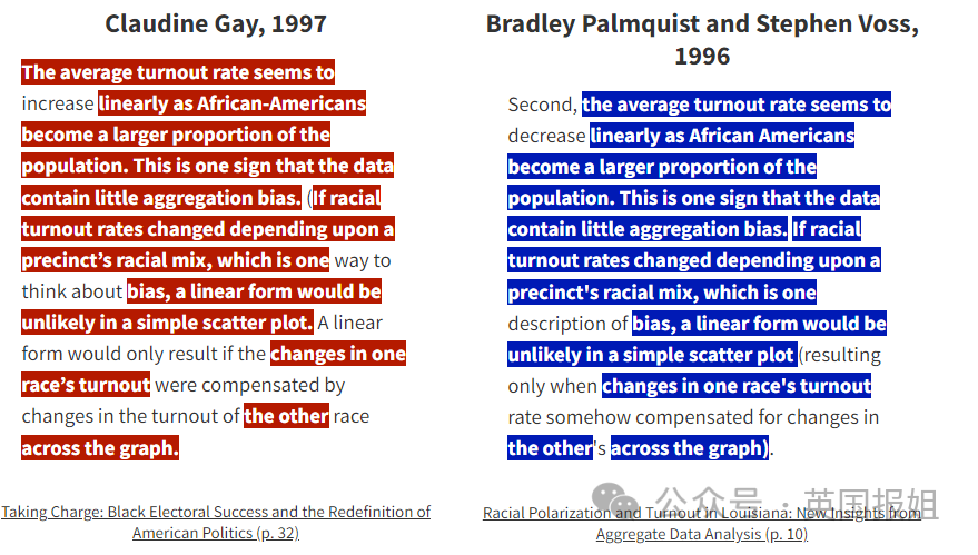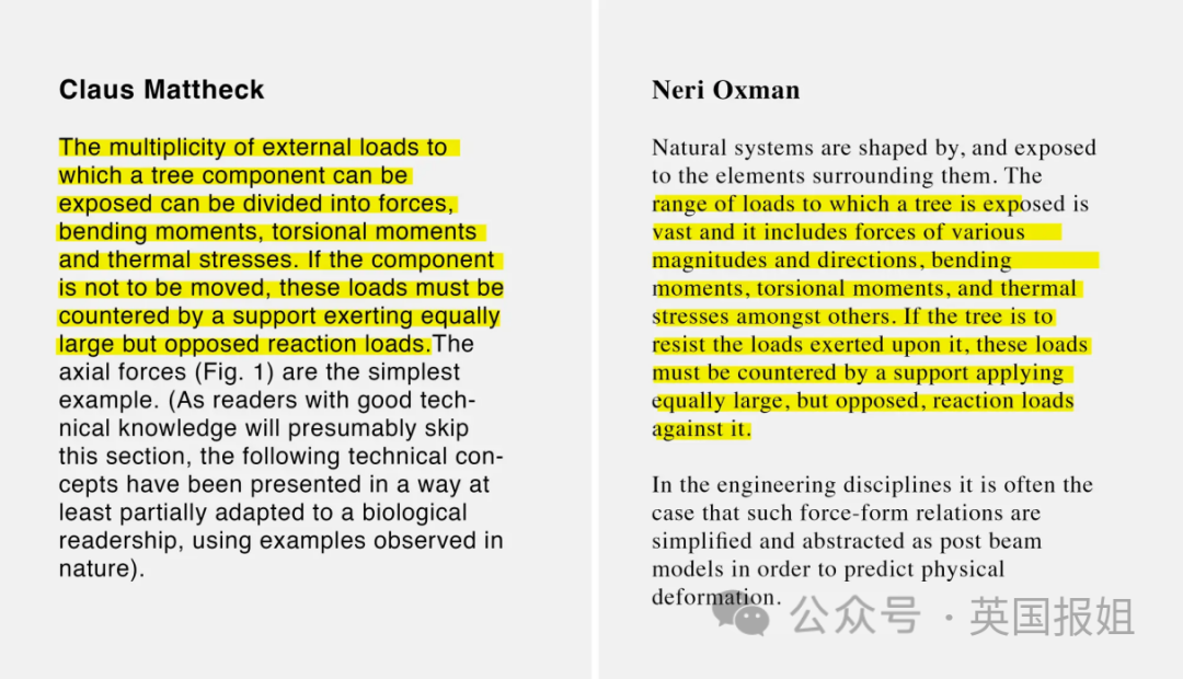 (媒体举例说明Neri的论文存在抄袭,右边为她的论文节选。)