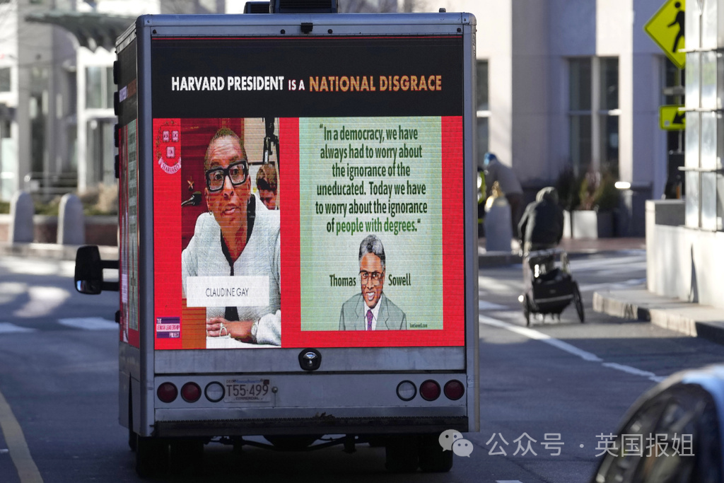 (反对Claudine的宣传车:哈佛校长是国家之耻)