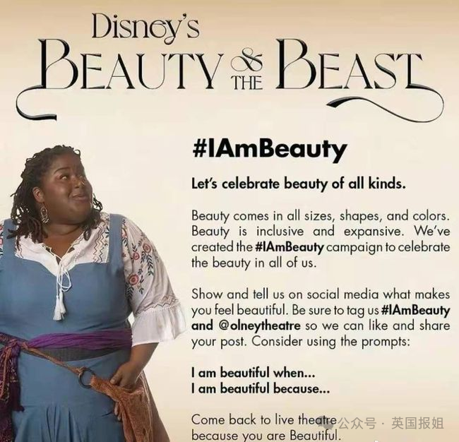 当我小时候读到这个童话的时候,贝儿并没有被描述成一个大码女孩,很明显,她也不是黑人,因为这个童话是法国的。
