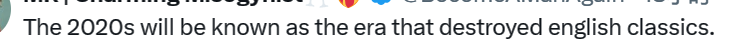 “21世纪20年代将成为毁灭世界经典英文作品的年代。”