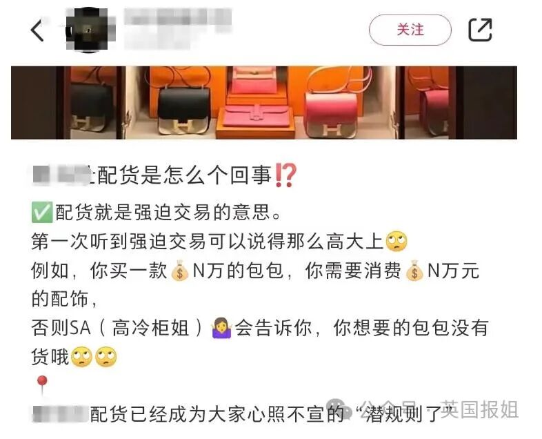 这种“配货”规则在某些高级奢侈品牌内部,已经成为了一种摆在台面上的“潜规则”。顾客不买够销售指定的配货金额,就休想从店里买走包包。