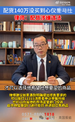 针对以上这些“配货”圈的歪风邪气,电视台也采访了律师。律师表示,品牌销售搞的这种“配货”制度,本身已经涉嫌违反了消费者权益保护法,不可取也应该及时取缔。
