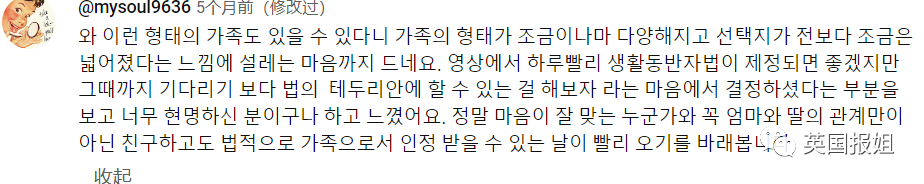 但在韩国,除非我们是合法的家人,否则想为彼此做这些事,基本不可能。”