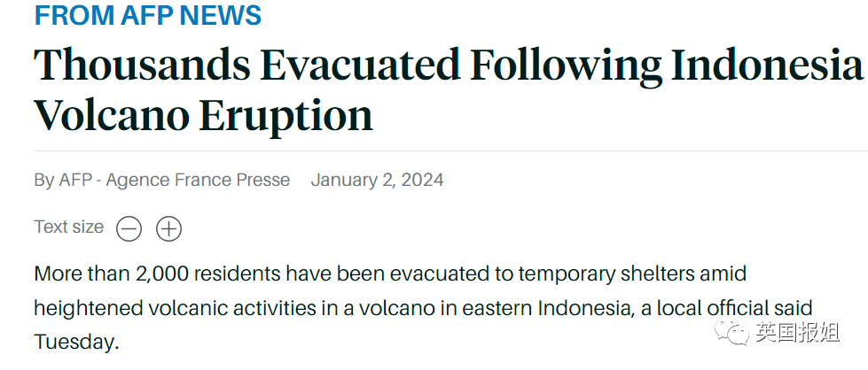 与此同时,外媒又报道了印尼那边也有火山喷发,2000多居民被迫撤离。2024刚开始,地球当头一棒,给兴奋迎接新一年的人类好好上了一课。