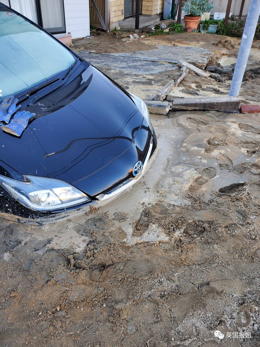 有人遭遇了地震中的“液状化现象”,地下水位高的沙地由于振动而变成液体,车辆完全被土地吞噬不知该怎样开出来。