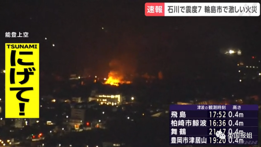 地震引发高达5米的海啸,海啸警报从地震发生开始,持续到今天上午11点才解除。能登部分地区被海啸冲击,场面惊悚。