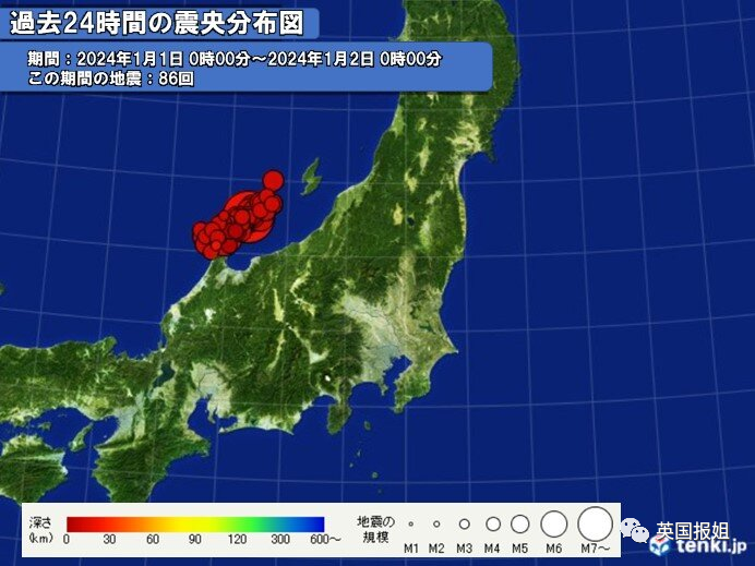 日本时间1月1日下午4点10分开始,震源深度30km、震级最高达到7.6的地震撼动了整个能登半岛。