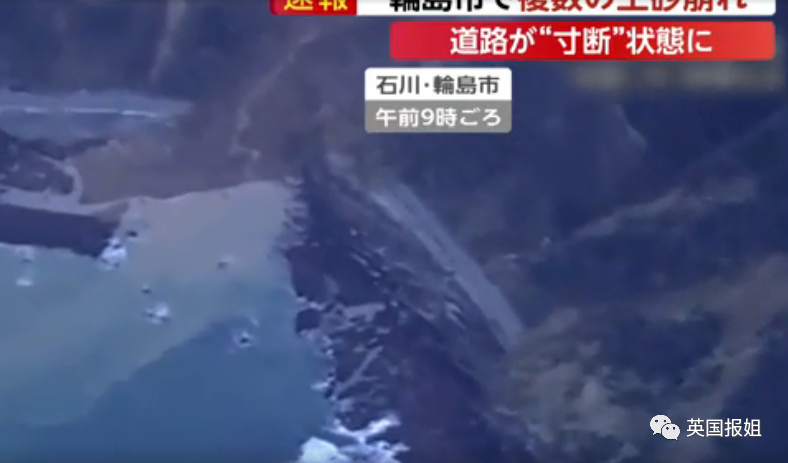 轮岛市的多次山体滑坡已经造成公路严重堵塞,原本的公路已经被沙石泥土切成小块,彻底无法通行。
