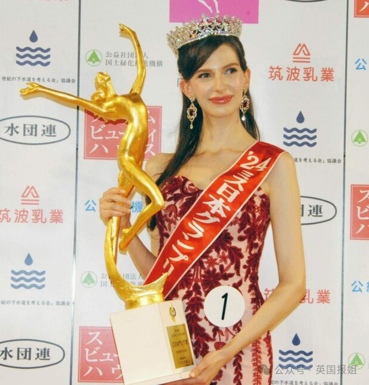 事实上,她的亲生父母都是乌克兰人,她本人去年才刚刚拿到日本国籍。很多人觉得她不应该成为“日本小姐”,白种人代表不了日本人的特质和文化。