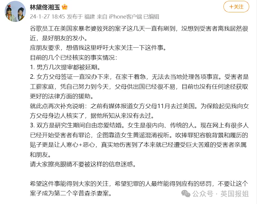在杀妻案曝光引起巨大反响后,各种采访、社交媒体帖子和论坛讨论纷纷涌现,很多男方的“亲朋好友”都出来,对陈立人的个人品质和学业成就表达赞赏,站出来多维度回忆陈立人,声称自己完全想不明白他为什么会做出这种行为。