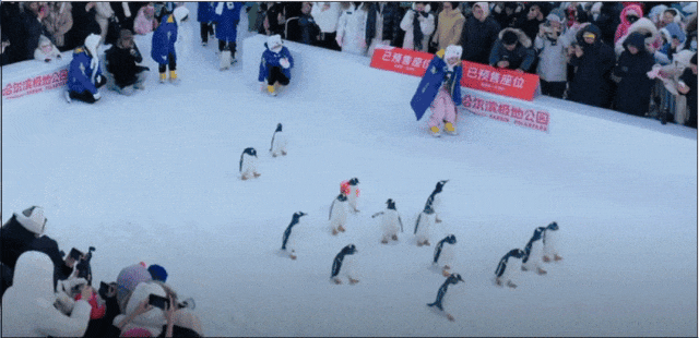 哈尔滨极地公园的小企鹅们,也背好小包包出门迎接客人,外地盆友们流下羡慕的泪水:没想到你们哈尔滨人背着我们玩得这么好???