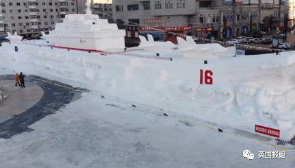 (辽宁舰不能借,雪雕版辽宁舰安排上了。图源:东北网)