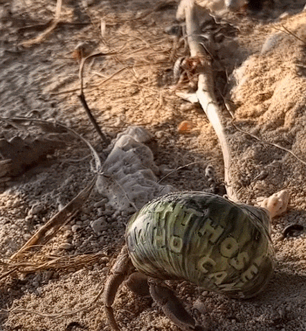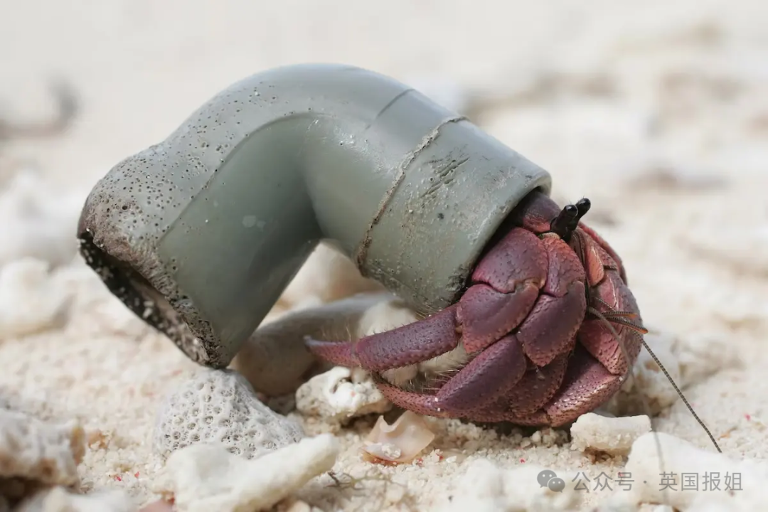 “寄居蟹们不再背着我们熟悉的那些漂亮的蜗牛壳了……而是换成了红色塑料瓶盖,或者各种奇奇怪怪的碎片。”