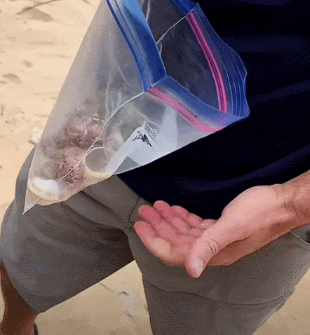 如果有人拾到这些甲壳,看到上面的留言,也会将其留在沙滩上。
