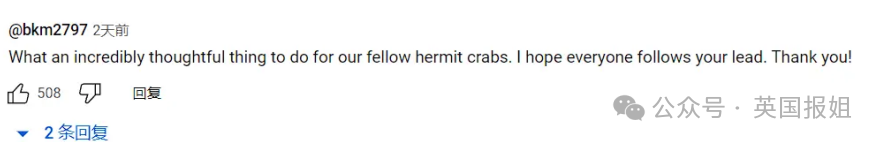 “为我们的寄居蟹伙伴们做出这样深思熟虑的事情,真是太棒了。我希望每个人都能跟随你的脚步。谢谢你!”